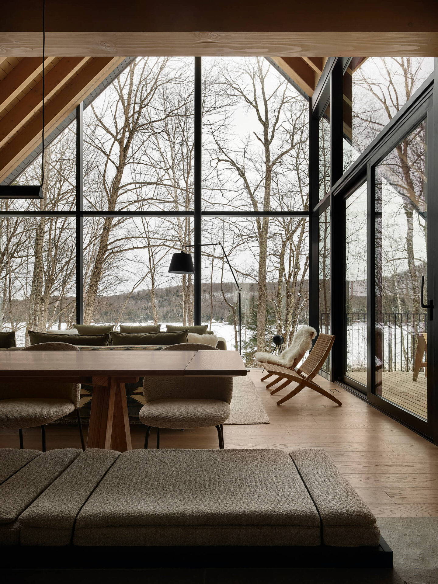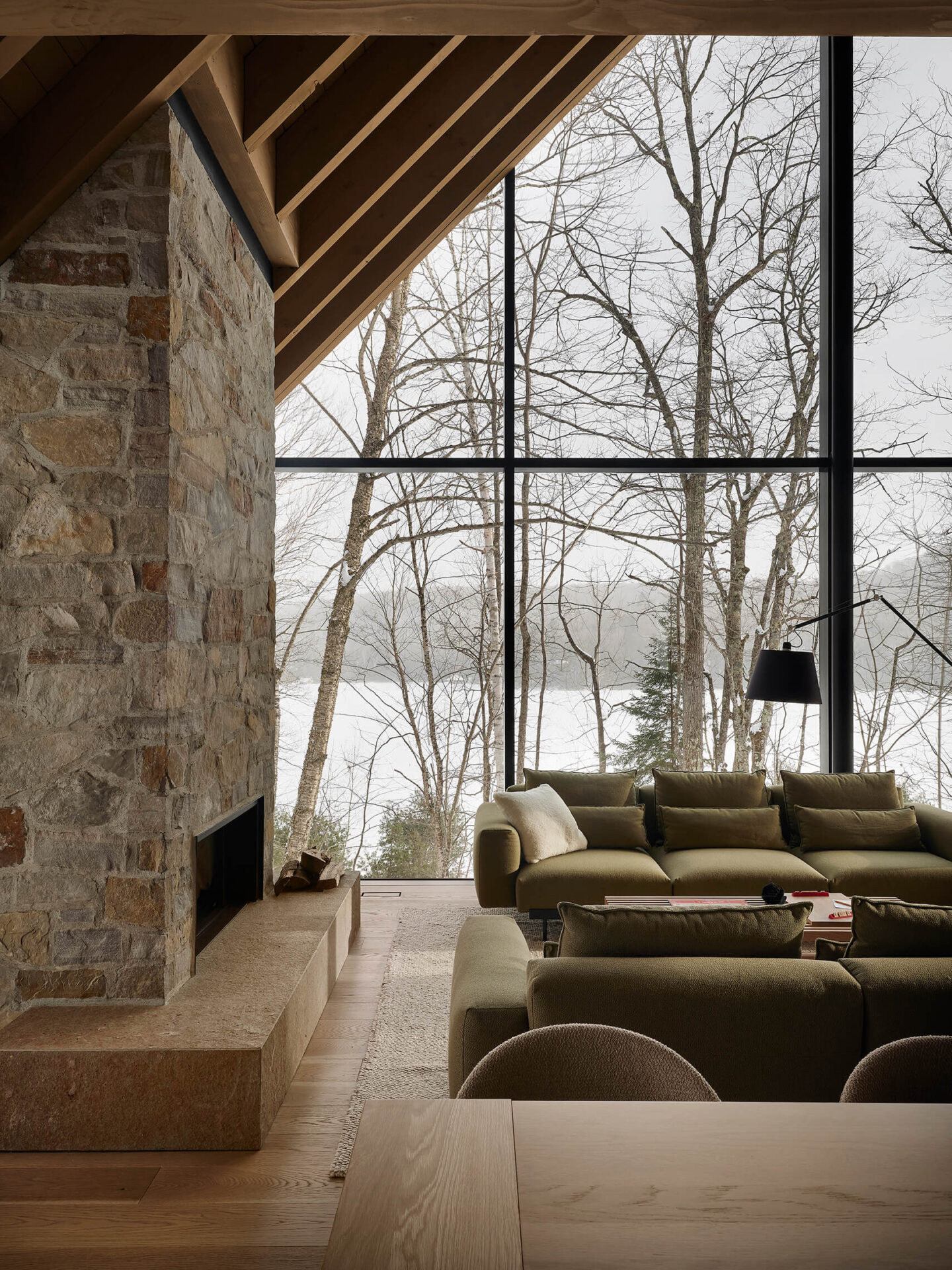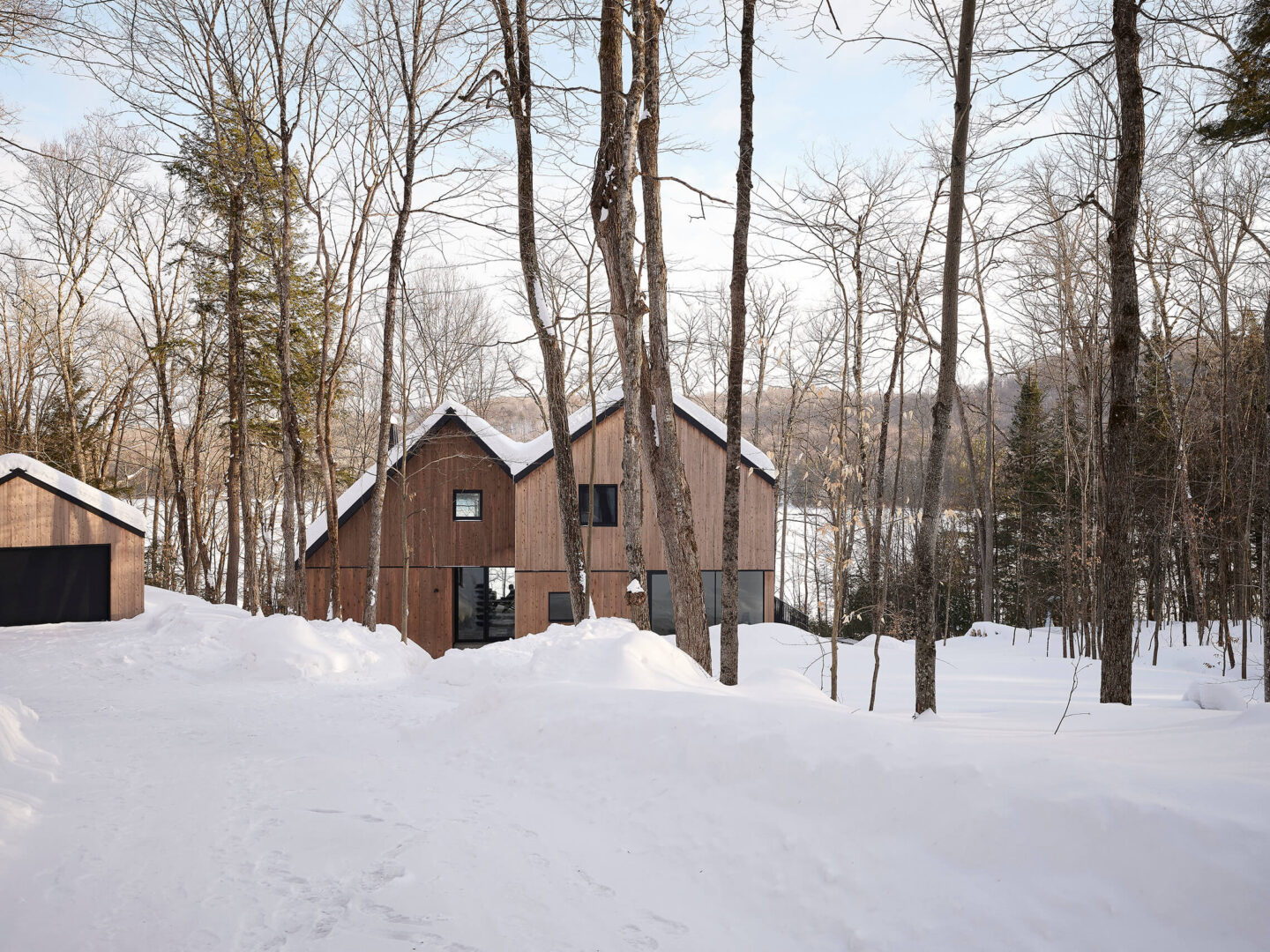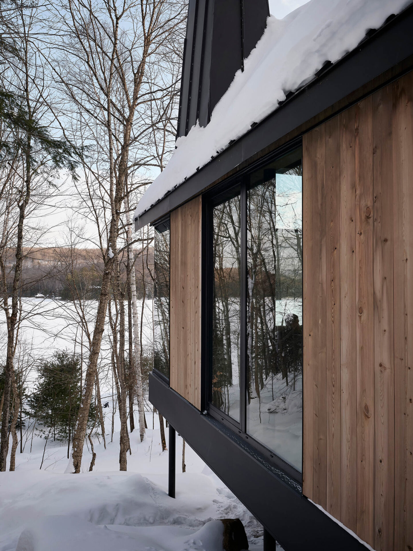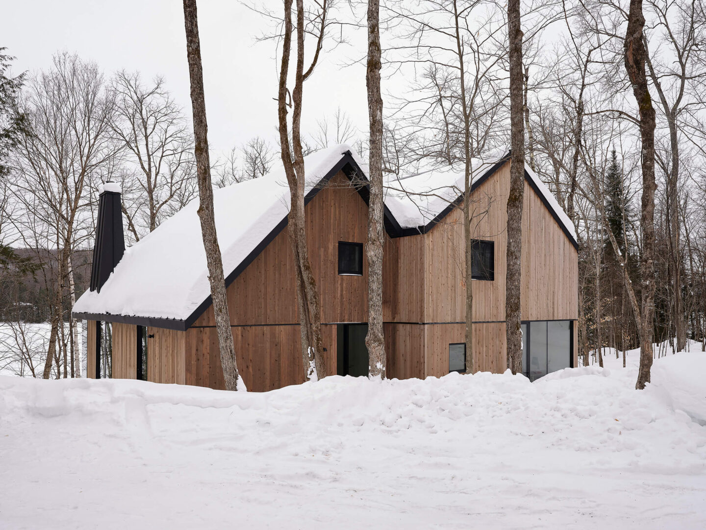 Par son respect du site, sa composition mesurée et sa matérialité authentique, ce chalet incarne une manière d’habiter le territoire laurentien qui conjugue confort domestique, vie familiale et sensibilité paysagère.