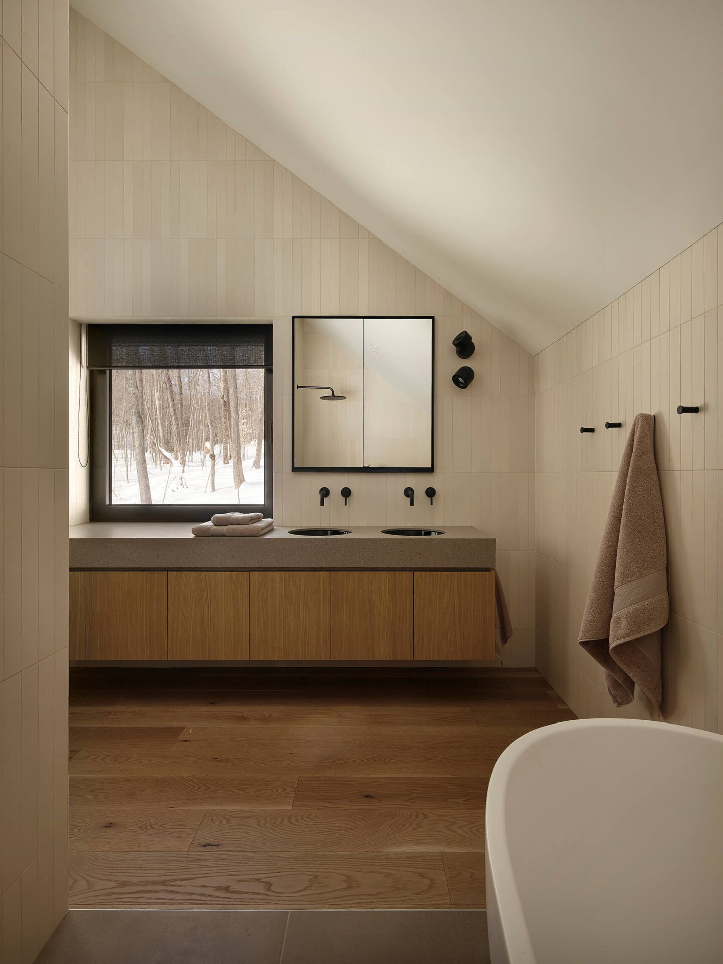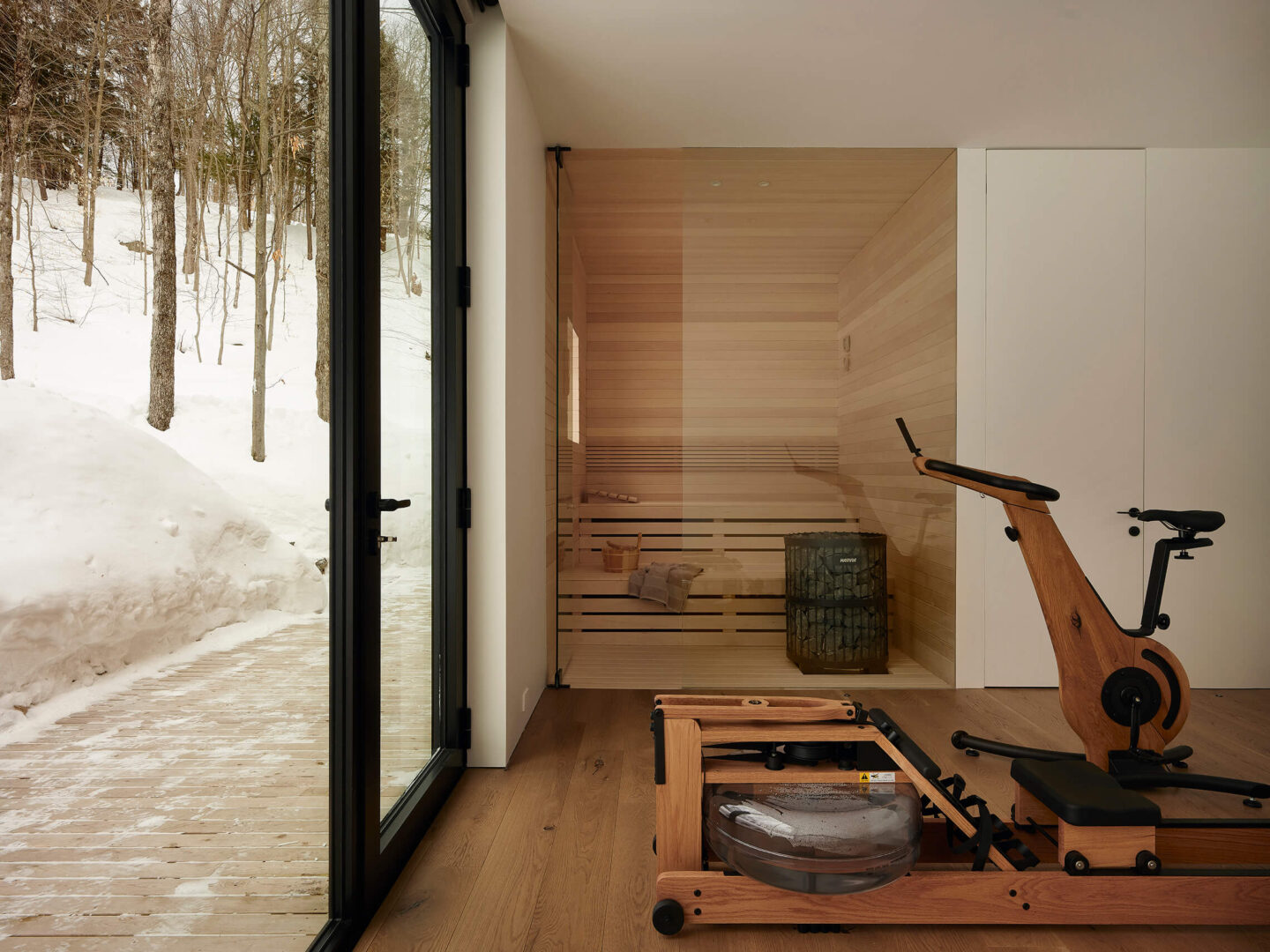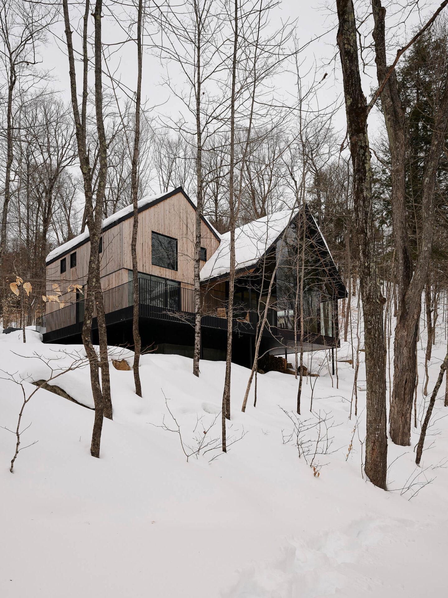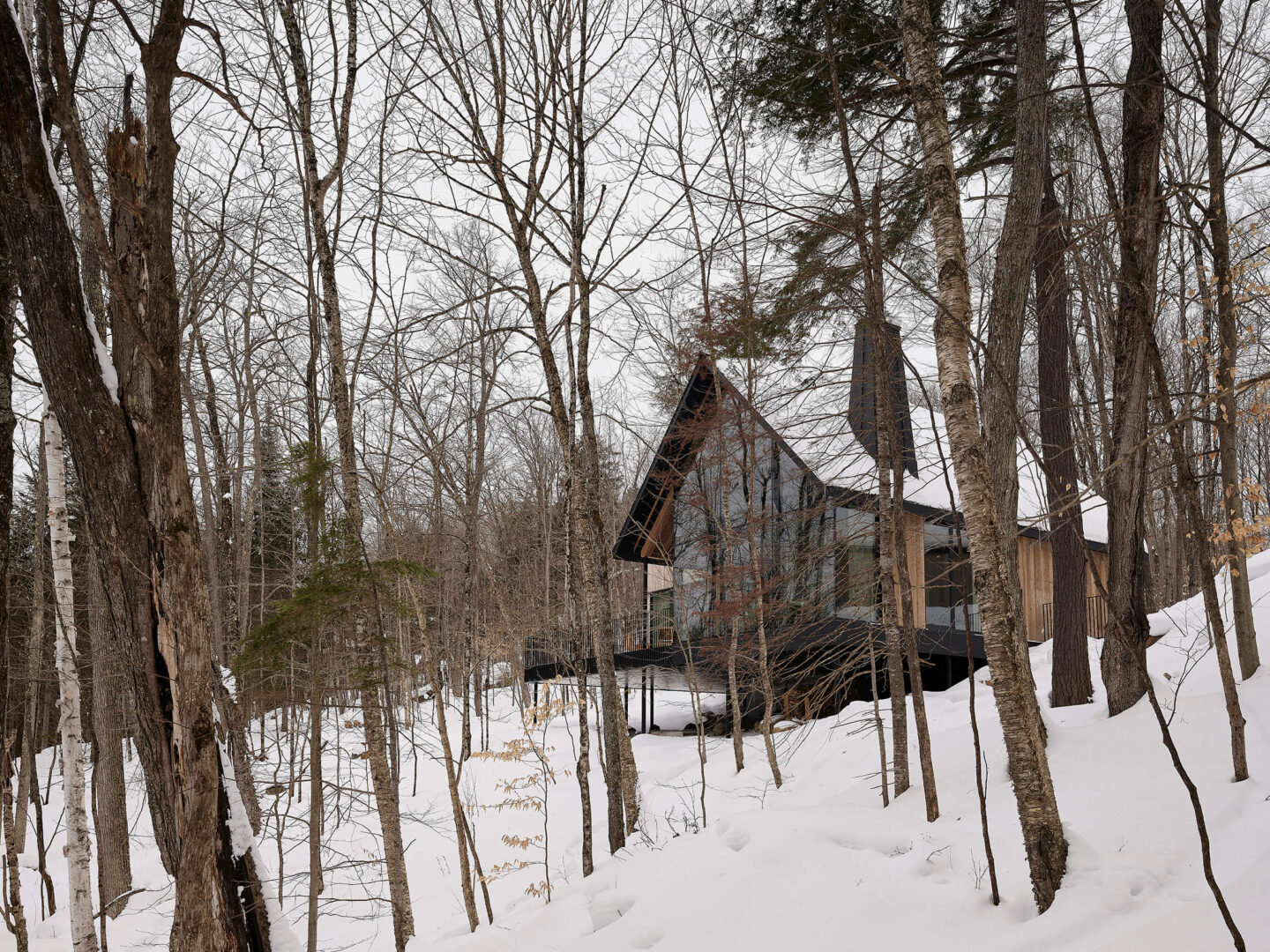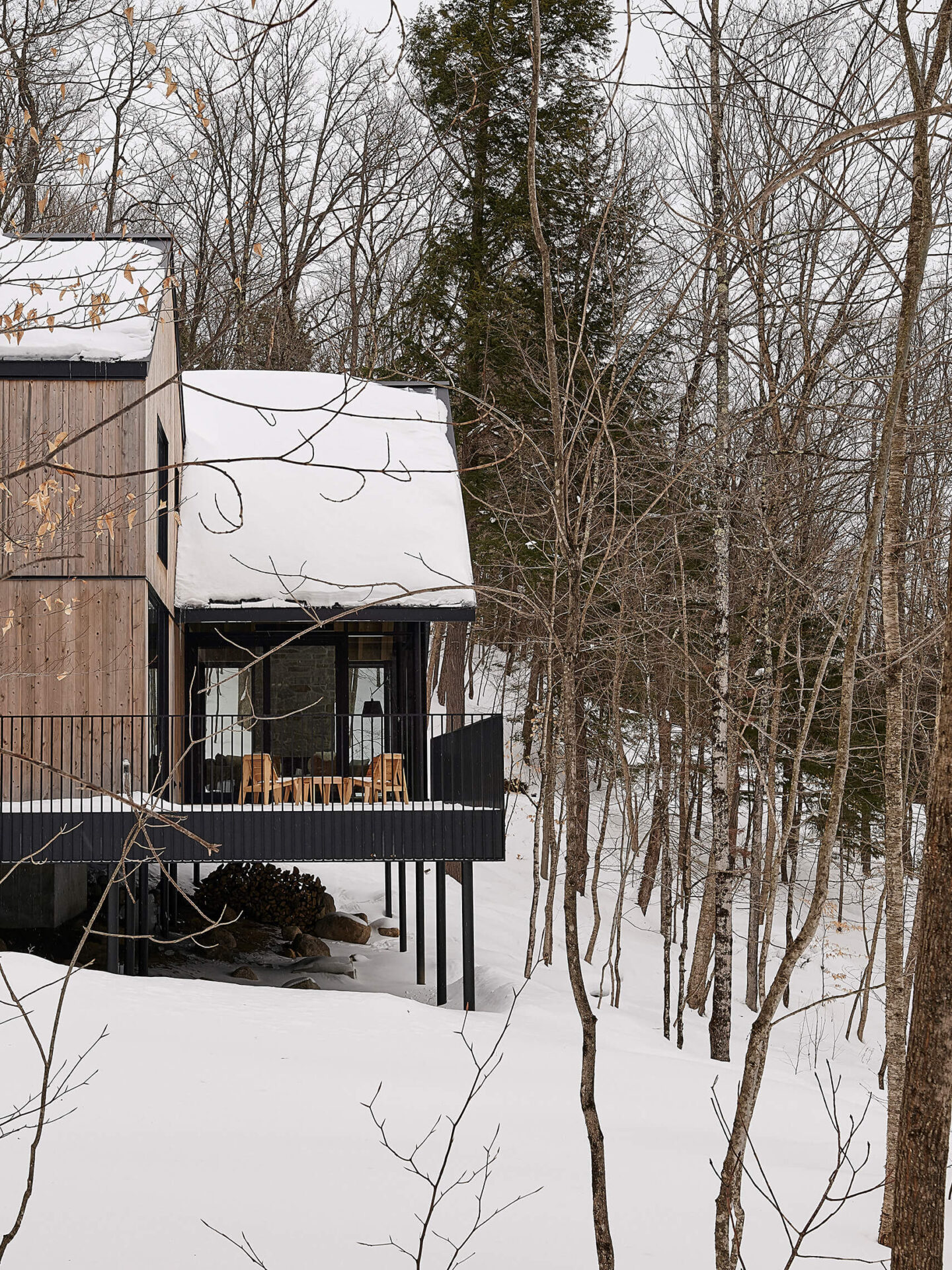 Par son respect du site, sa composition mesurée et sa matérialité authentique, ce chalet incarne une manière d’habiter le territoire laurentien qui conjugue confort domestique, vie familiale et sensibilité paysagère.