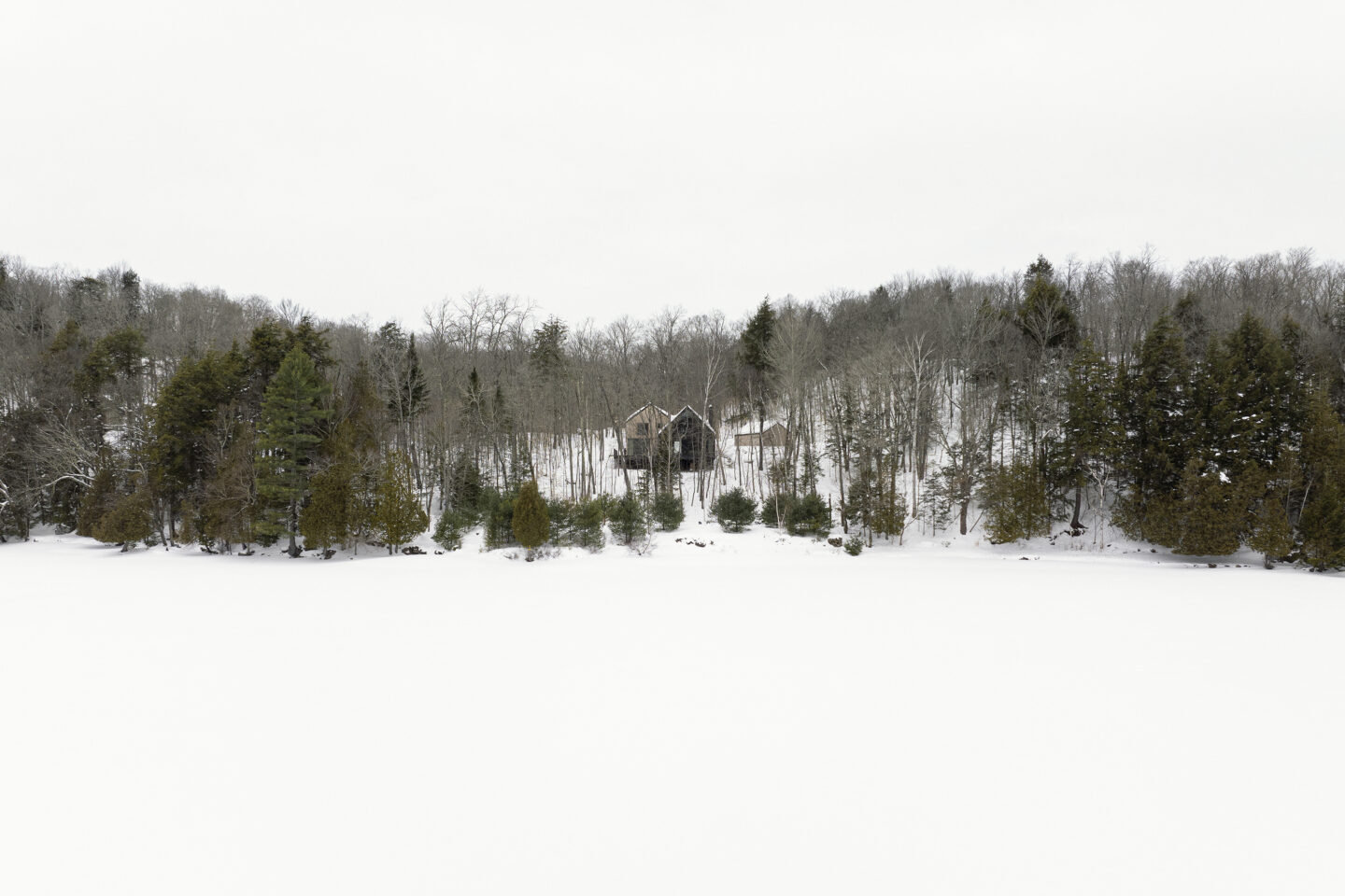 Sur la pointe des Jésuites aux abords du lac des Écorces à Barkmere, ce chalet s’implante sur un site empreint d’histoire. Les vestiges d’un ancien terrain de tennis et le sentier riverain qui longe la propriété témoignent de l’occupation de ce site d’exception par la communauté religieuse. Le projet s’ancre dans la tradition des chalets laurentiens tout en proposant une approche contemporaine de l’habitation respectueuse de son milieu naturel montagnard et lacustre.