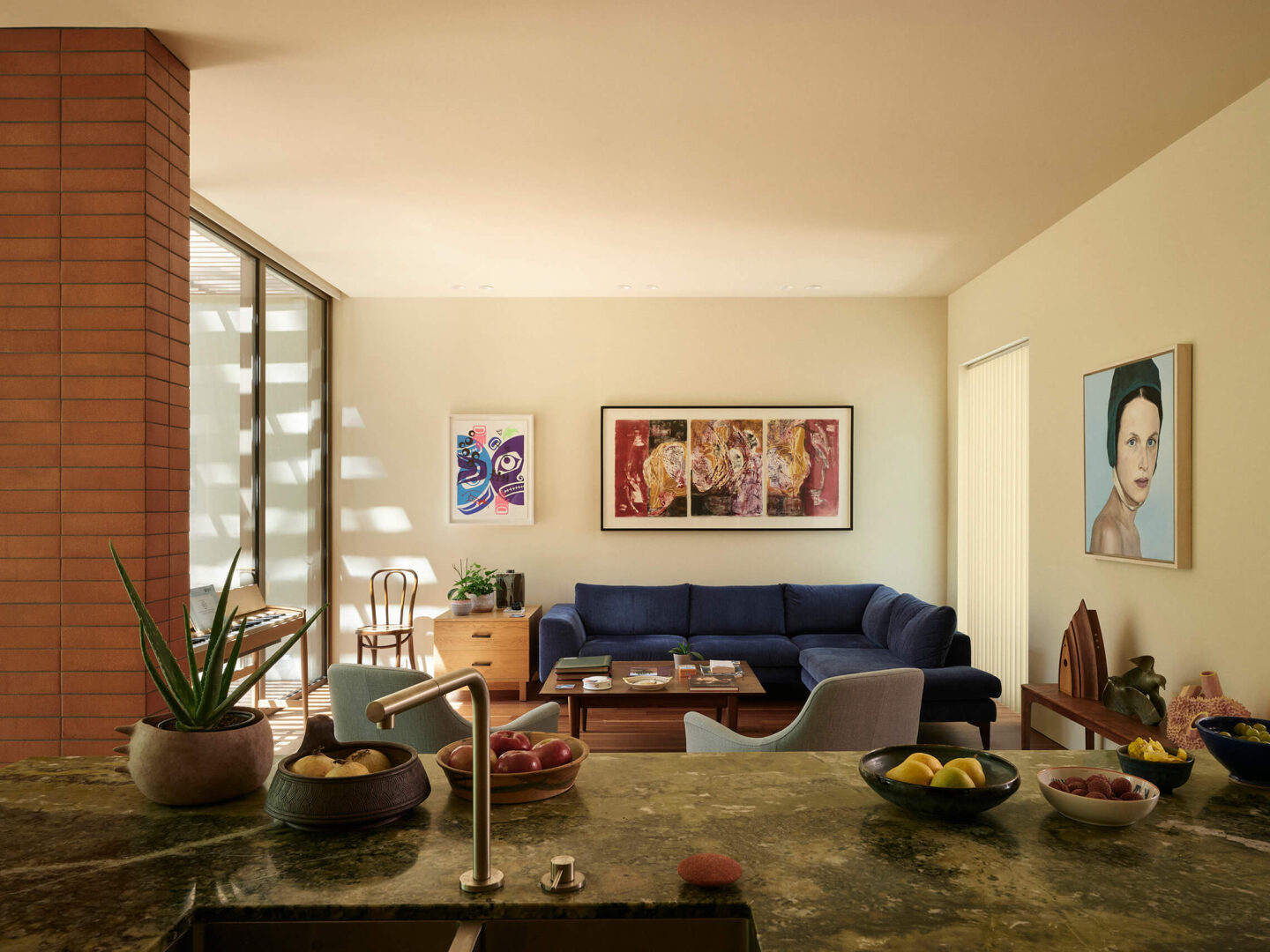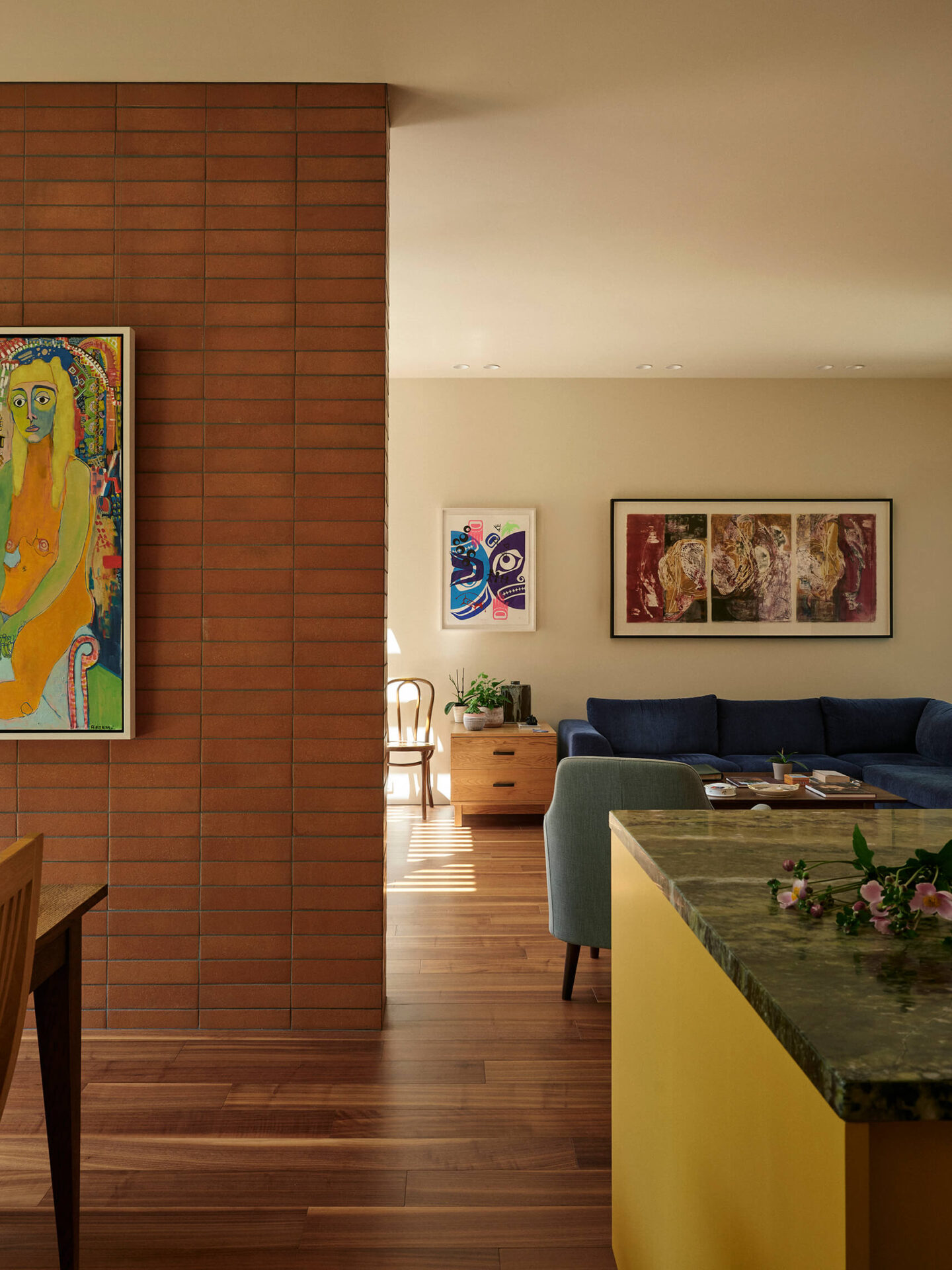 Ce projet aura permis à toute l’équipe de s’aventurer en territoire nouveau. Celui où la couleur dicte l’architecture, plutôt que de simplement l’accompagner. Le résultat est une maison vivante, singulière et profondément habitée. Un lieu chaleureux où chaque espace dialogue avec la lumière, les matériaux et le temps qui passe.