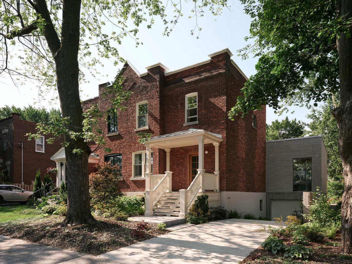 Dans le quartier de Notre-Dame-de-Grâce à Montréal, cette maison unifamiliale jumelée a fait l’objet d’une restauration soignée et d’un nouvel agrandissement à l’arrière, remplaçant une extension détériorée. Or, c’est la couleur qui est au cœur de ce projet, non pas comme un habillage de fin de parcours, mais comme point de départ de toute la réflexion architecturale.